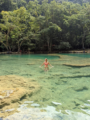 Auf meiner Reise nach Guatemala bin ich Mama Kakao im Dschungel begegnet. Mitten im Dschungel gab es diese Wasserbecken, in denen ich schwamm. Zum Trocknen und Sonnen legte ich mich auf die Felsen und dann hörte ich ihre Stimme. Sie sagte mir: "Trag mein Licht in die Welt. Hilf anderen Menschen mich zu verstehen."